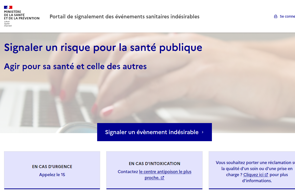 - Accéder au portail de signalement des événements sanitaires indésirables : https://signalement.social-sante.gouv.fr/
