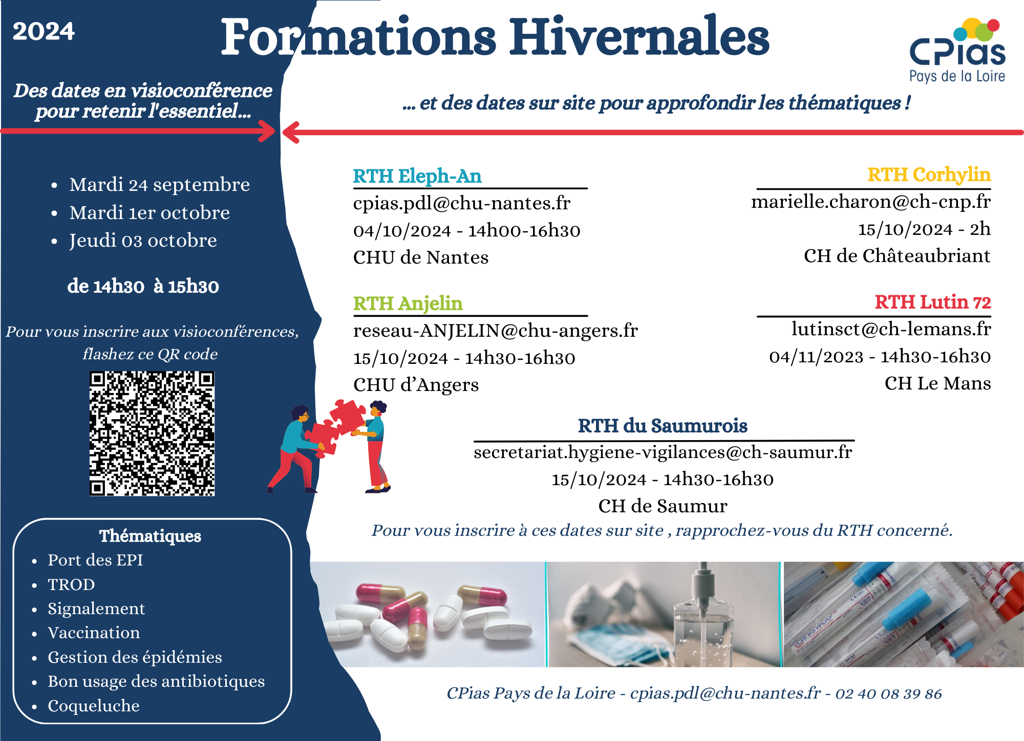 Le CPias PdL et les Relais Territoriaux en Hygiène (RTH) de la région, vous invitent, comme chaque année, à participer à des formations pour vous aider à anticiper, signaler et gérer les épidémies d'infections respiratoires et gastro-entérites aiguës.